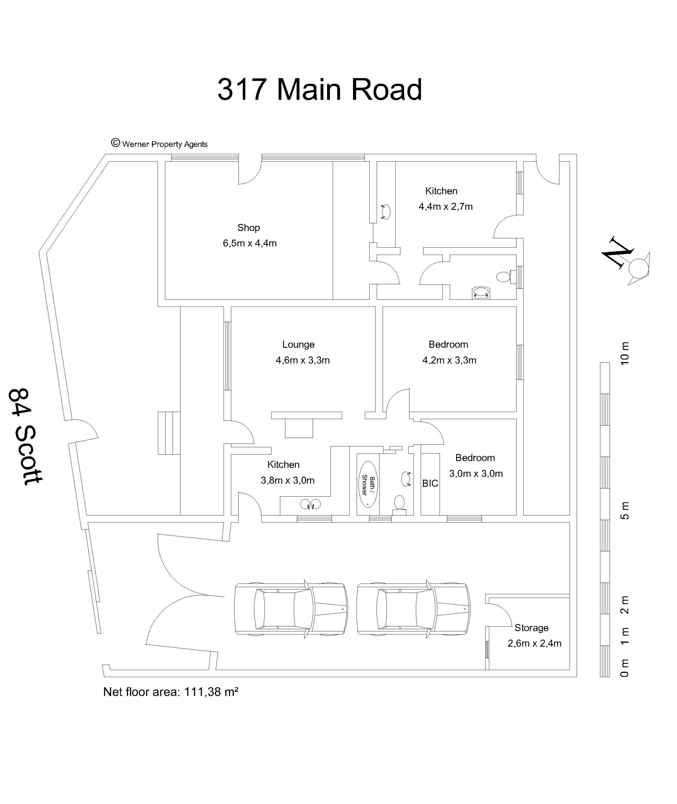 * Attached to the shop is a residential property with two bedrooms, lounge and kitchen.